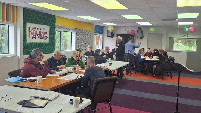 Sixteen people from Paengaroa Bible Chapel, Lakes Church Rotorua, and Lifezone Church came together to learn principles for digging deeper into God’s Word.