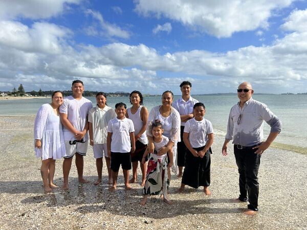 Kolokota Sao-Mafiti (Otahuhu Gospel Hall ) is seeing God at work in their young people. Pastor Kolokota, pictured above, right and church family celebrated a baptism at Eastern Beach one Sunday in March.