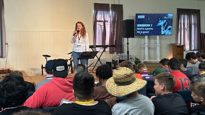 Camp speaker Steph van Wijk of Auckland Bible Church (pictured above), shared a clear gospel message in the daily TAG (Talk About God) sessions, making the most of the camp theme to engage the campers in fun and creative ways.