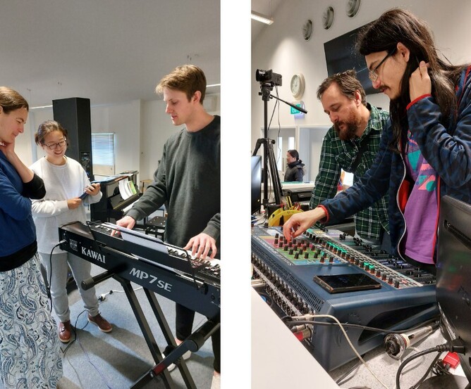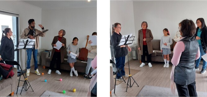 After lunch together, five different workshops covering piano, keyboard, guitar, vocals, and AV were run concurrently. Then everyone returned to combine and practise what they had learnt.