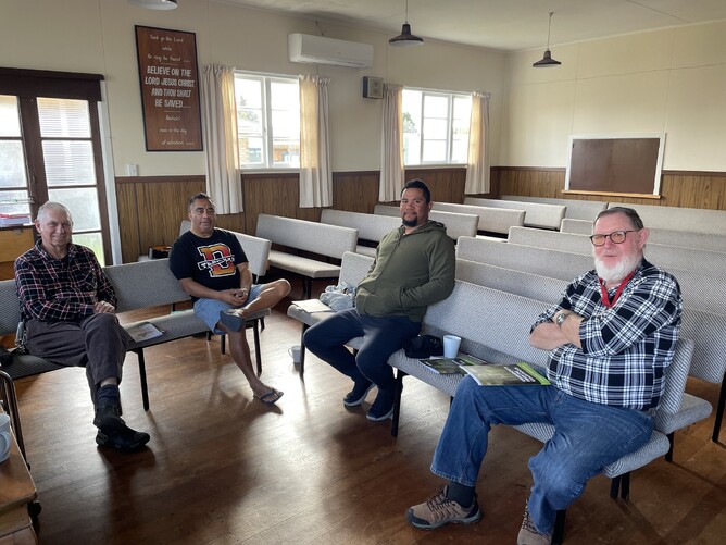 Monday afternoon was spent with leaders from Kaitaia Bible Chapel, Vince Mason, Paul Williams, Kilipeni Fakatou, and Mike Flay.