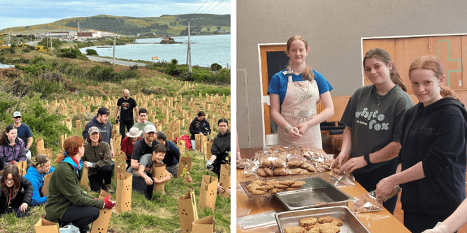 “Projects involved planting trees at several different sites, gardening, painting, bark chipping and general maintenance at four schools/early childhood centres, baking and card making to thank the Police/Ambulance/Fire crews, Oranga Tamariki staff and other community service people, rubbish pick up at Ōreti Beach, just to name a few”.
