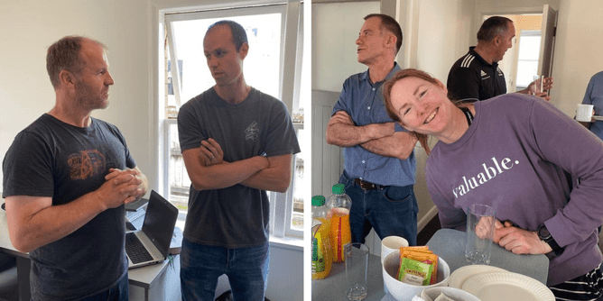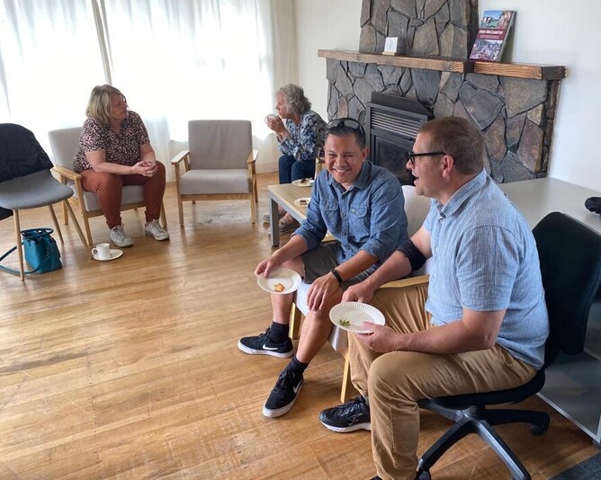 Left picture: Jeremy Lind (Pastor at RSCC) and Clark Taylor (Bethany Trustee). Right picture: Front, Hughie Castle (RSCC). Behind, JC Marais (CCCNZ Operations Manager) and Mark Grace (CCCNZ Ambassador).
