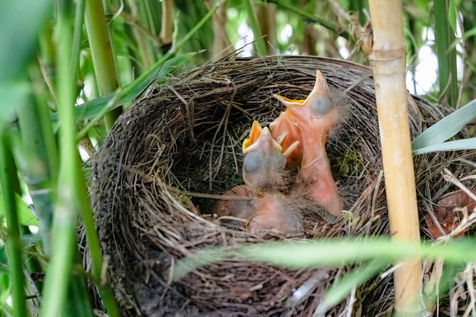 More than once in our woodshed I’ve come across a bird’s nest. Each time, the nest is full of hapless, disorientated, noisy chicks.