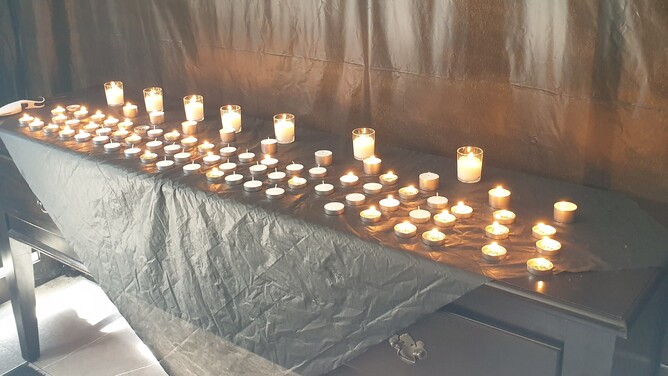 “Communion taken under the cross. Blackboard to write gratitude on. A fishing net with small fish to write names of those you would like to pray for to come to faith. A monologue performed of Jesus and his disciples in the garden of Gethsemane. And art, music, collage and more.