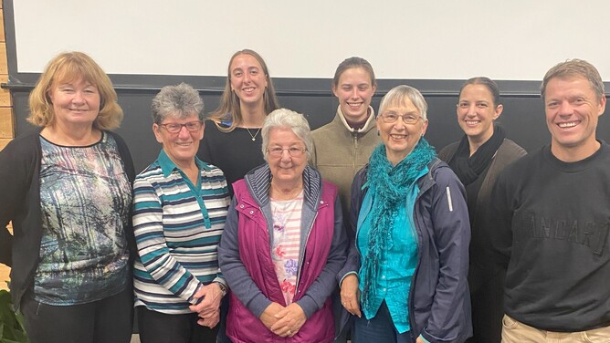 Front row, from left to right: Esther Managh (Greerton Bible Chapel), Margaret Scrimgeour (Paengaroa Bible Chapel), Mary Persson and Mary Hudson (Greerton Bible Chapel), Blair Vercoe (Lifezone). Back row, from left to right: Mikayla Crawford (The Orchard), Frances Ferguson-Smith and Kylie Brown (Lifezone).