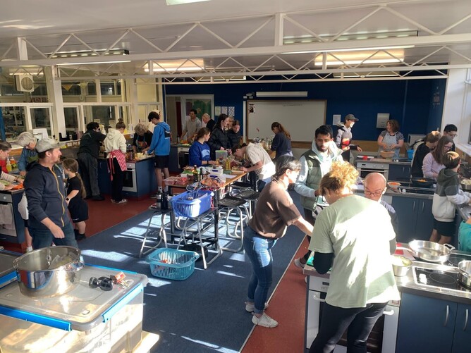 “Over 80 people got involved at the most recent one on Sunday 26 May. Jobs included gardening/weeding, lawn mowing, moving and stacking firewood, helping a family shift house, picking up rubbish at a local school, baking cookies/muffins, making cards, and making meals for the community.“A large team assembled at a local intermediate's food tech to prepare over 30 cooked meals which were given away later in the day at a local community centre. It was fantastic to see young and old working together to prepare and distribute the meals, learning and being energised by each other in the process.”