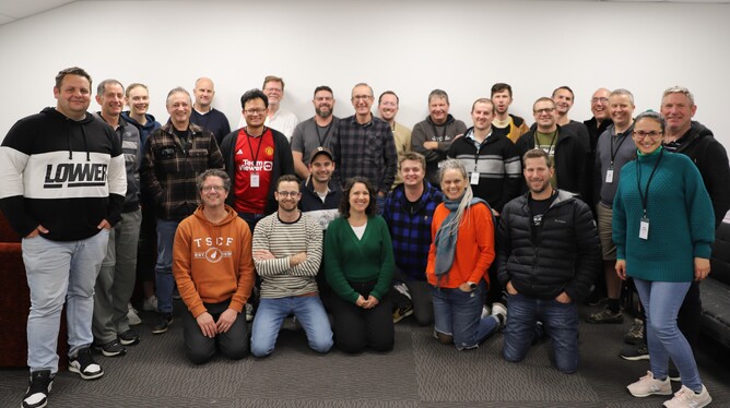 Standing (left to right): Clint Craig, Nigel Winder, Marina Shannon, Brian Ropitini, Jason Winslade, Simon Sim, Paul Windsor, Doug Benn, Mark Fryer, Lance Robinson, Neville Knight, Brett Campbell, Nevin Beukes, Grant Birks, Justin Thompson, Mark Grace, Tim Hodge, Dave Bradley, and Paula Almada. Seated in front (left to right): Nick Goodwin, Jerram Watts, Matt Meek, Jenny Gill, Richard Goodwin, Shannon Samuels, and Daryl Bay. Missing from picture: Andrew Clemow.