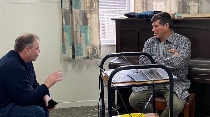 Pictured above, Tony Foster, who serves as NZ Rally CEO chats with Greg Ellis from Lighthouse Church TutukakaIt’s encouraging hearing how churches are working together to point people to Jesus, through the gospel from the Bible through camping.