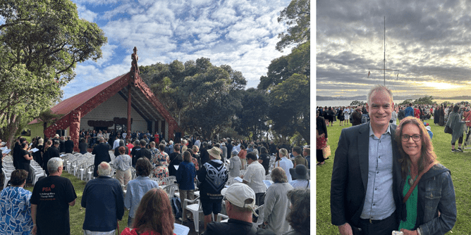 Karen Whitehead from The Street Church in Wellington (and Longview Trust) along with Luke Goodwin from Raleigh Street Christian Centre in Cambridge (and Longview) participated in the Karuwhā experience, serving on the Lower Marae at Waitangi with food preparation, toilet cleaning, and car parking along with learning how the gospel profoundly influenced and impacted the Treaty.