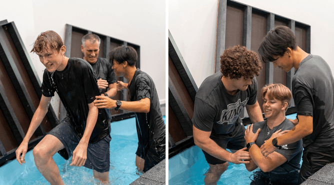 “On Sunday 13 April we celebrated with Ren, Morgan, and Evan as they professed their faith in Christ for salvation and made public commitments to follow him.