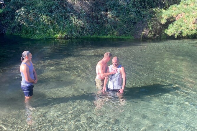 At the beginning of this month, Danny had the joy of baptising those two men in the beautiful Blue Springs/Waihou River. It was a frosty morning, and the river—11 degrees all year round—provided a memorable setting.