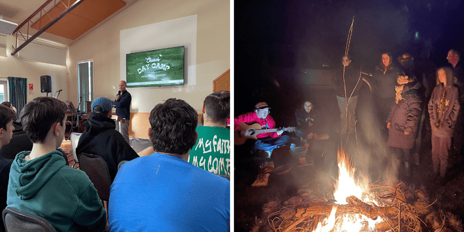 Friday night was a relaxed time of board games, sitting around the fire indoors, and, for the brave, gathering around the outdoor firepit to roast marshmallows and sing along with Ella Marchand, Lance and Emma Robinson as they led worship with guitars.