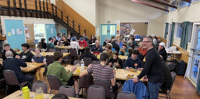 Dinner was another highlight: a delicious roast prepared by Tim and Kathy Stedman with a team of helpers. Tables were labelled with different interests—such as books and reading, hunting and fishing, and op-shopping—so people could share conversations around common interests. For dessert, everyone swapped tables to connect with new people.