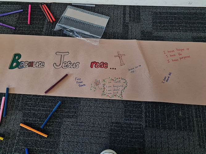 During one of the small group sessions, each group read through a full passage together, then wrote haiku poems (a three-line poem conveying a single moment where the poet suddenly sees or realises something, with 5 syllables in the first line, 7 syllables in the second line, and 5 syllables in the last line). They then had the opportunity to share these with the wider group. “Our youth really got into writing haiku poems based on John 19,” says Mikaela.