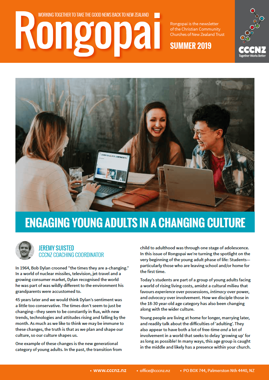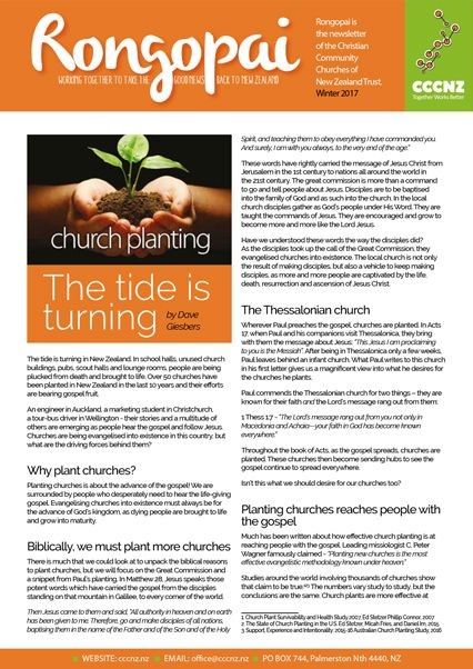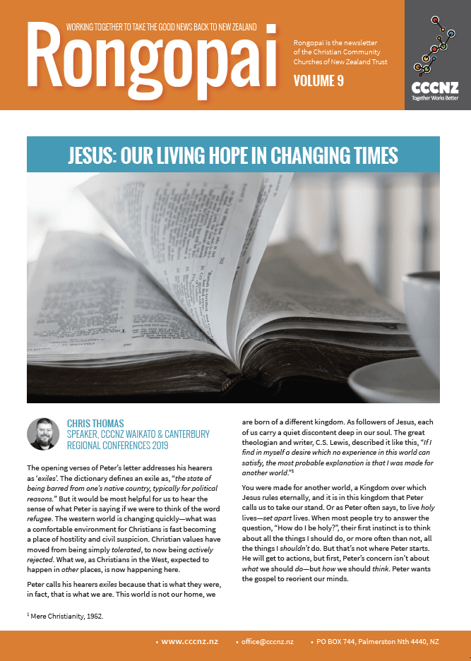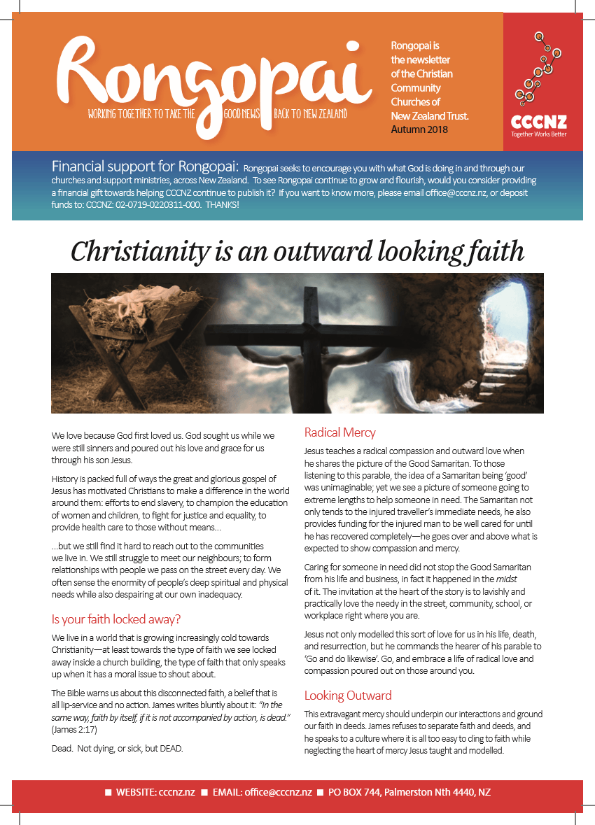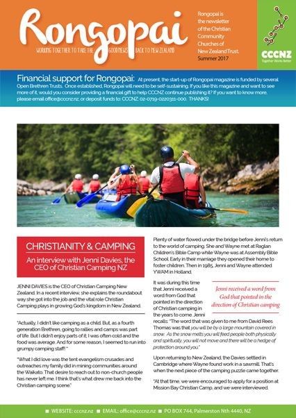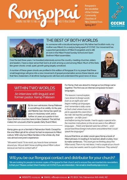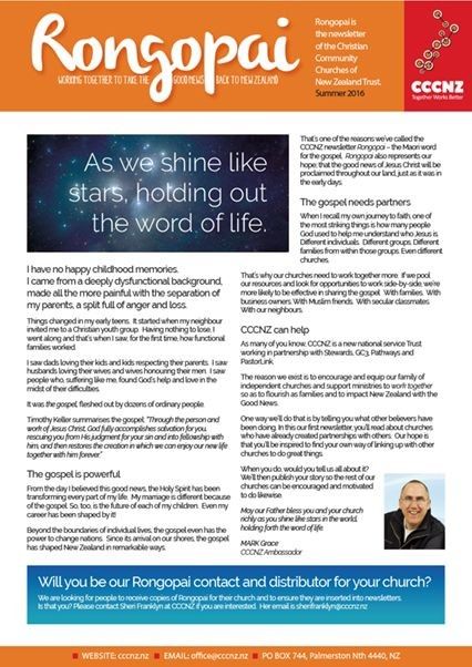 Rongopai is the Māori word for 'good news', and our magazine is one way CCCNZ seeks to encourage believers to work together to impact New Zealand with the good news of Jesus Christ.